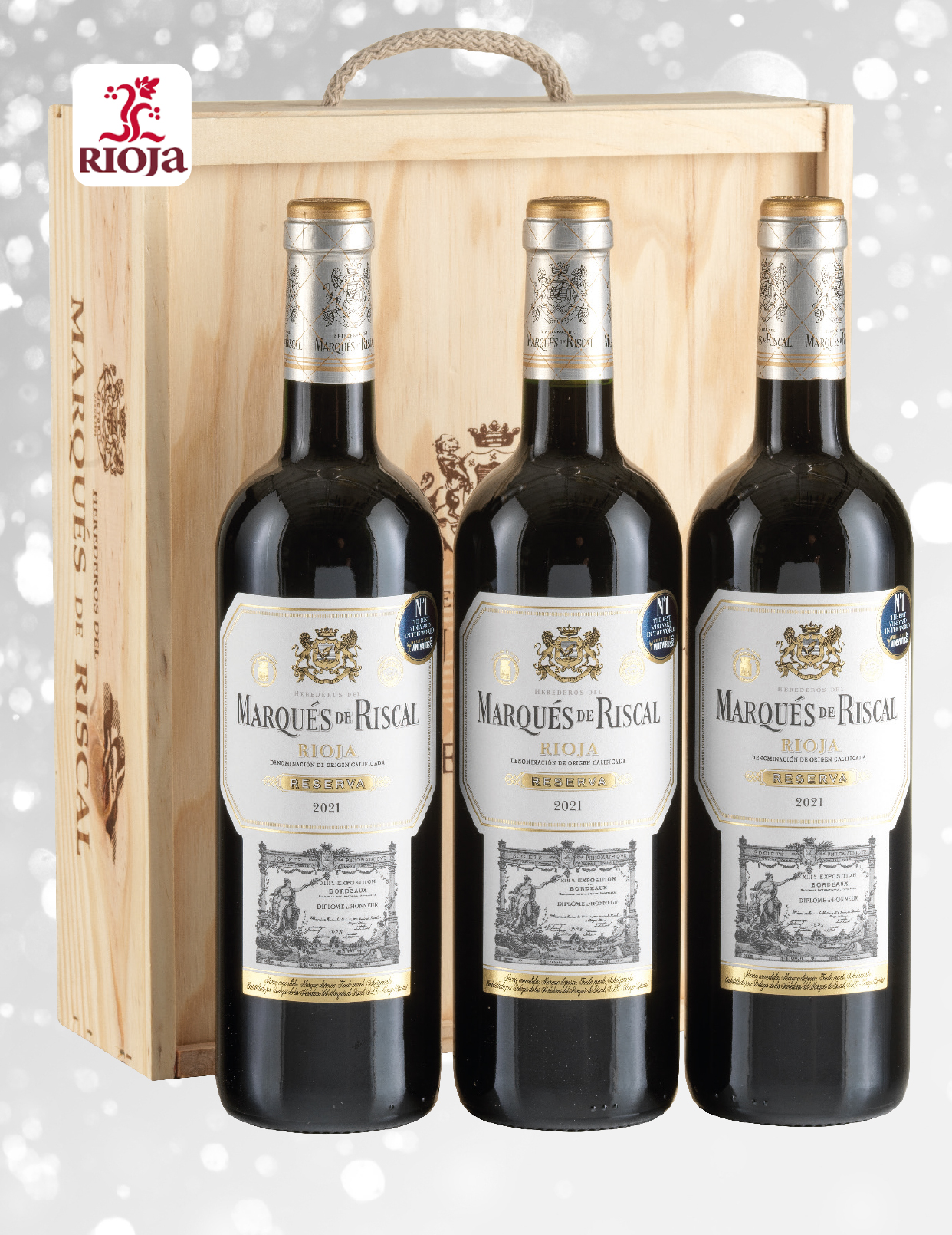 • 3 botellas vino tinto d.o. Rioja «Marques de Riscal» reserva 75 cl.